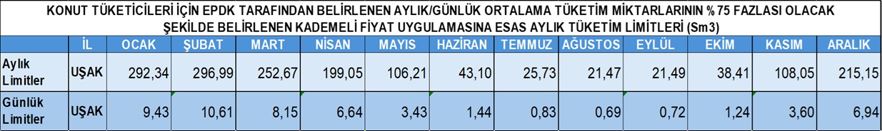EPDK verileriyle hazırlanan il ve ay bazlı tüketim limitleri BOTAŞ’ın internet sitesinde yayınlanmıştır. ( https://www.botas.gov.tr/uploads/dosyaYoneticisi/325499-kfu_limitler.pdf)